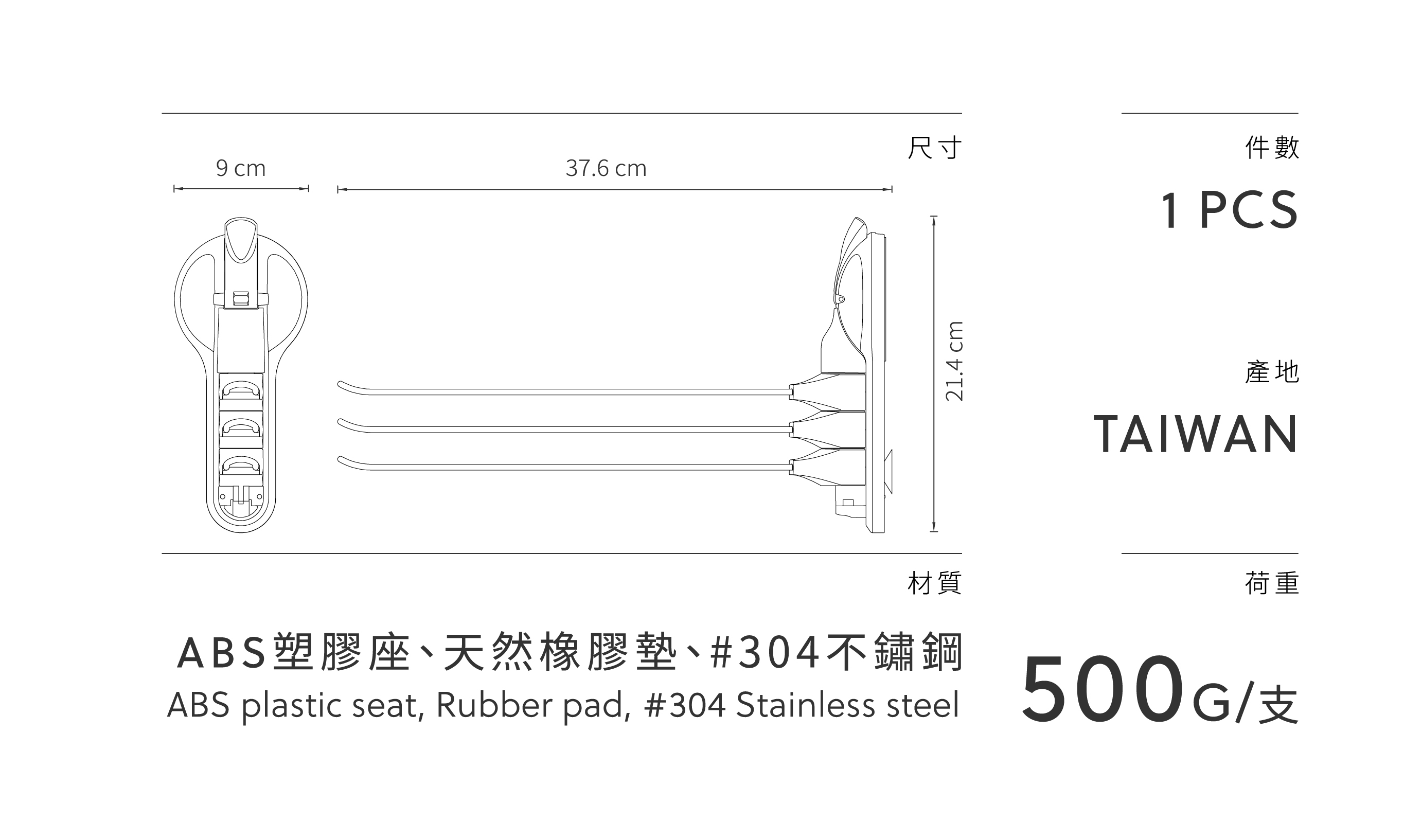 • 單根掛桿可承重500g